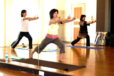 持ち物・・・ヨガマット(持ってる人)、飲料水、タオル